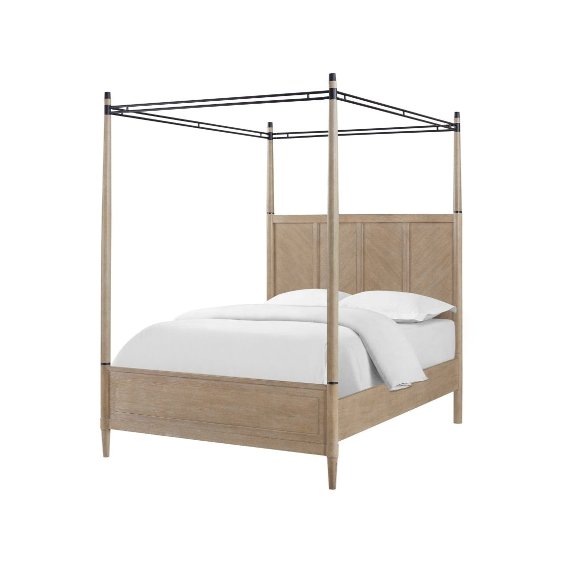 The Citrus Heights Canopy Bed combines timeless elegance with modern appeal, featuring clean lines and a transitional casual lifestyle design. Crafted from high-quality Mindi veneer with a wire-brushed texture, it showcases the natural grain and warmth of the wood. Finished in a subtle Sand hue, this bed exudes both contemporary flair and classic charm. The canopy adds a sense of grandeur while maintaining understated refinement, making it a perfect focal point in any bedroom.