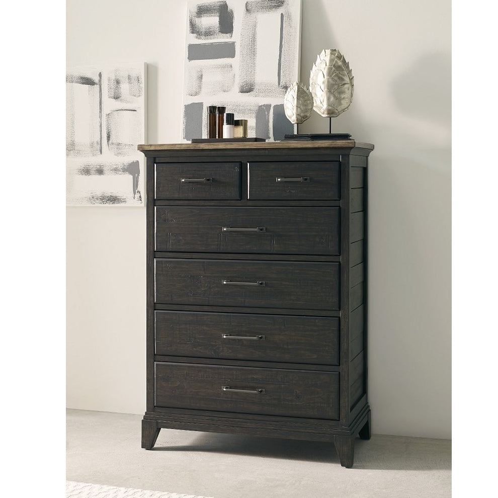A true storage workhorse, the Devine chest of drawers is built to function well for generations. It is crafted from solid New Zealand pine using the techniques and attention to detail that Kincaid is known for. This particular drawer chest also features two removable dividers in the second and third drawers from the top to keep things organized.