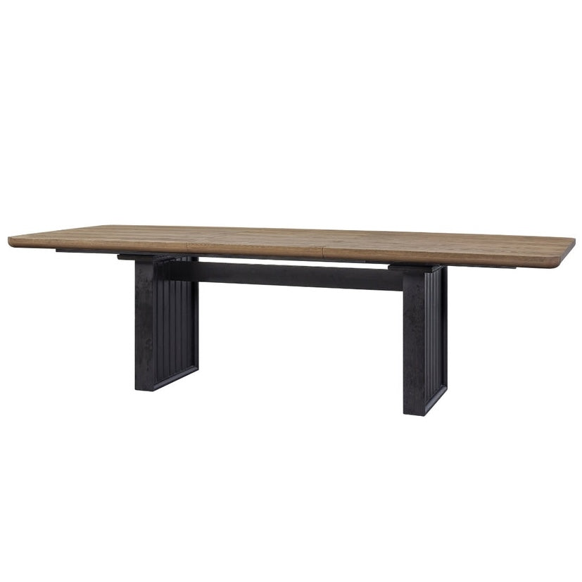 The Elure Double Pedestal Table is a stunning addition to any dining space, featuring a sophisticated Peppercorn base and a rich Latte top crafted from premium Elm veneers. This elegant table spans 80 inches, providing ample room for family and friends, and extends to an impressive 106 inches with the addition of a leaf, making it perfect for larger gatherings. The double pedestal design not only enhances stability but also adds a touch of timeless charm, ensuring this piece remains a central focus in your home for years to come.