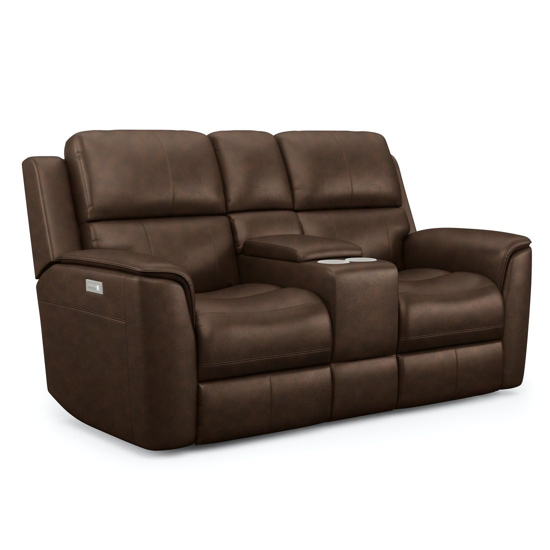 With convenient storage and beverage holders, you'll never want to get up from the Henry Loveseat with Console and Power Headrests and Power Lumbar. Designed with your comfort in mind, this ergonomic loveseat offers Zero Gravity recline and our durable yet flexible DualFlex Spring System. An easy-to-access power control allows you to independently adjust the recline and headrest, while a home button returns both to their original positions with one touch. Easily charge your devices with a USB port in the power control, and enjoy the comfort of a generously scaled frame, contoured seating and refined padded arms with welt trim.