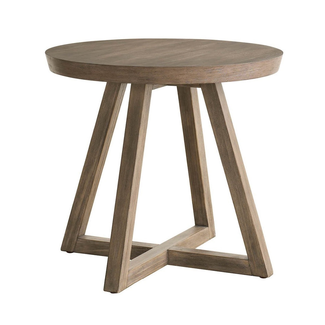 The Boulder Round Side Table adds a touch of architectural interest with its striking X-base design and round tabletop, finished in a warm Boulder medium-brown. Its clean lines and natural wood grain create a versatile piece that complements any living space, offering a stylish surface for drinks, books, or decorative items.