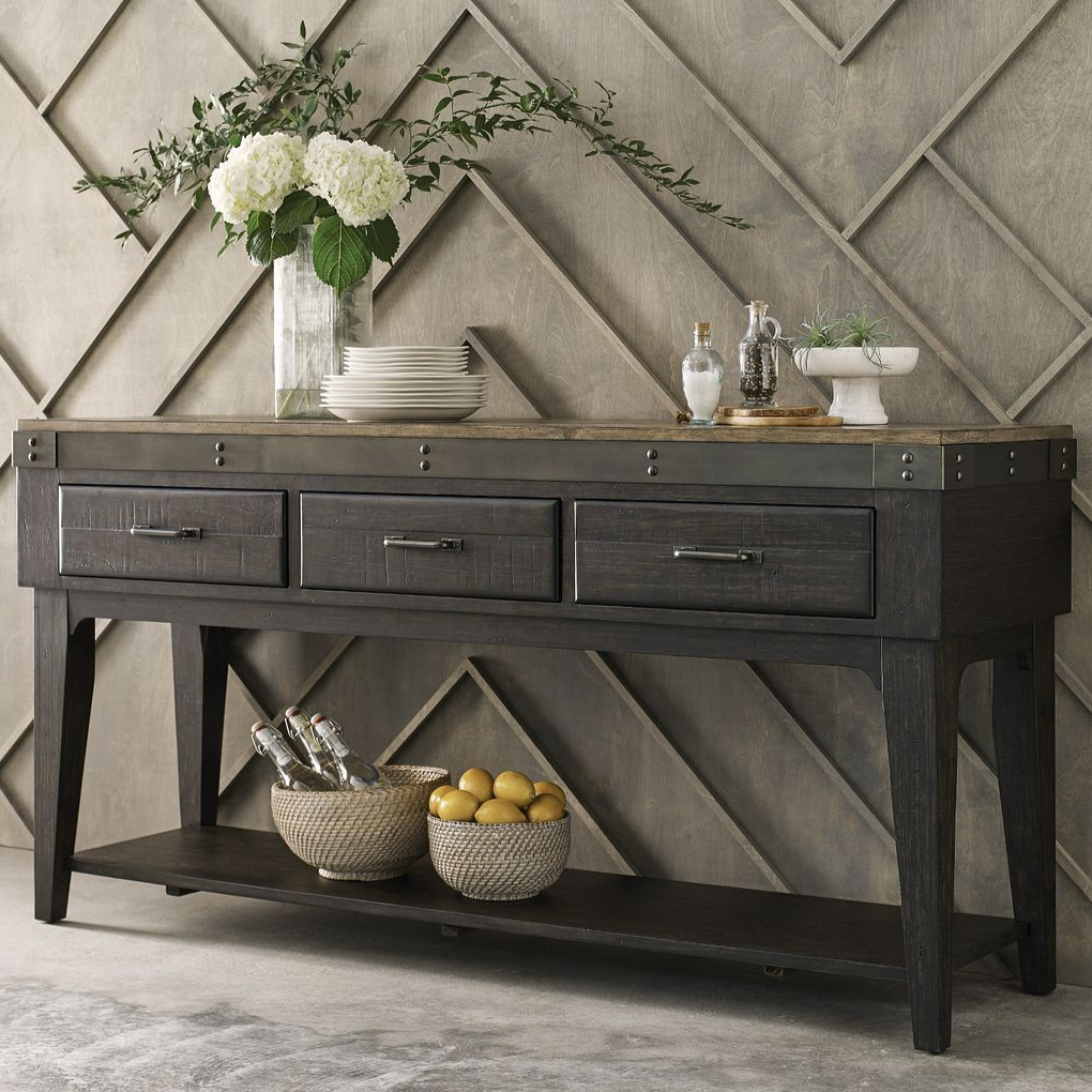 If you had to select a single word to describe the Artisan's Sideboard, sturdy would be a good option. It was designed with a style similar to more primitive, hand-made furniture resulting in strong construction and a casual character. It is made with solid New Zealand pine and trimmed in metal where the top joins the cabinet.