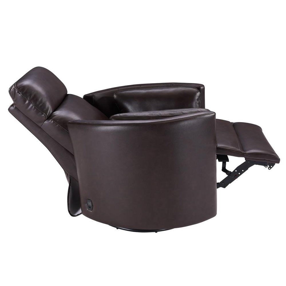 Fashionable and functional, this stylish Power Swivel Glider Recliner’s swivel feature will ensure you never miss any of the action or conversation. Perfect for relaxing at the end of a long day, this model features a soothing gliding motion and smooth power reclining for ultimate comfort.