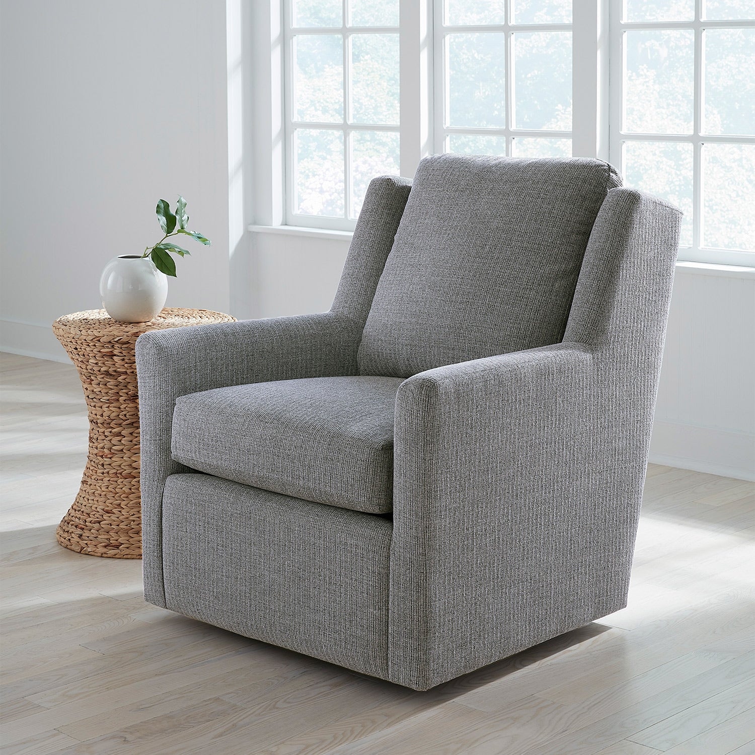 A transitionally styled chair that pairs nicely with many decorating styles. Its defining feature is one you can't see at all - the 360 degree swivel feature, which allows the chair to rotate from left to right, right to left, or all the way around.