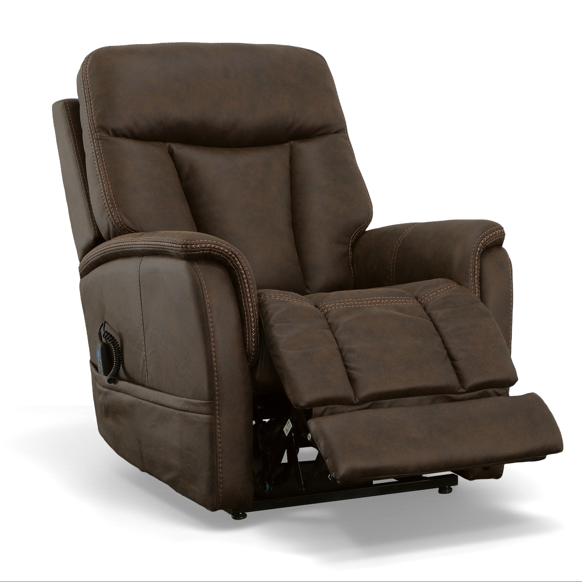 Relieve pressure on your joints, and experience seamless movement with the Atlas Power Lift Recliner with Power Headrest and Lumbar. Atlas literally rises to the occasion with a power lift mechanism you can access with a convenient hand wand. And further customize your recline with by independently adjusting the headrest, footrest and lumbar support. The wide, contoured sculpted seat, pad-over sloped arms and buried welt detail with heavy-thread cross-stitching add comfort and style. Atlas is comfortably built to last thanks to Flexsteel's patented Blue Steel Spring™, which offers firmness and flexibility as you sit.
