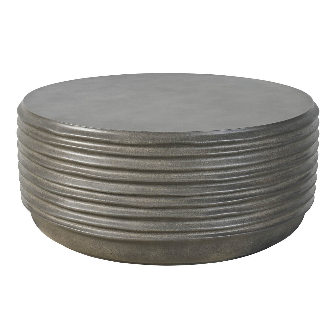 The Dwell Charcoal Cocktail Table adds a touch of modern elegance to your living space. Its unique, ribbed design and bold charcoal finish bring a tactile and visually appealing element to your décor. This round cocktail table serves as a stylish centerpiece, offering both a surface for display and a sculptural element to enhance your room's aesthetic.